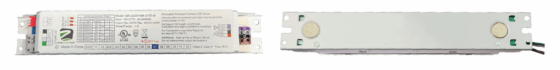 | Dimming | 0-10VDC, (optional: TRIAC) |