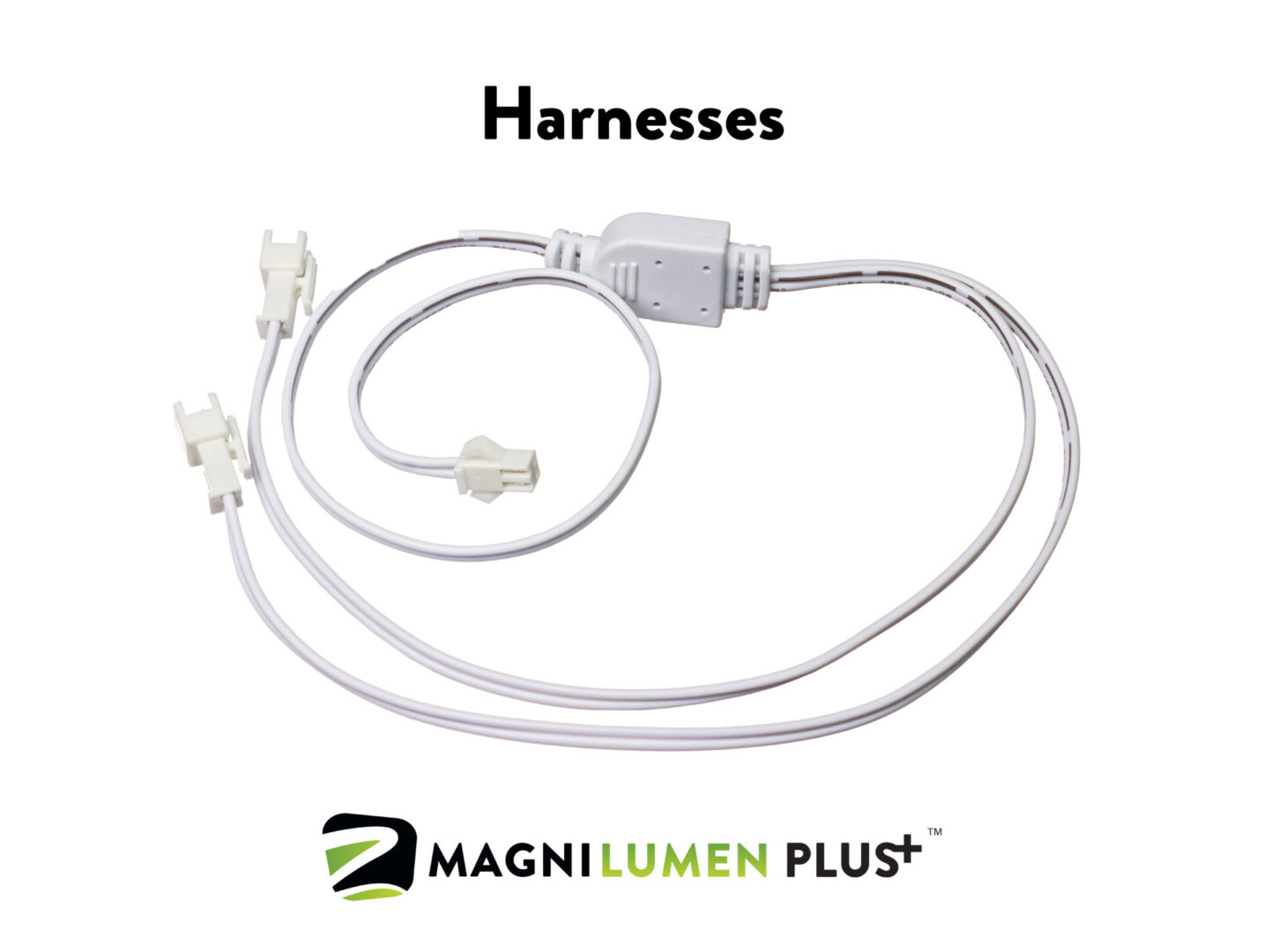 The various pre-engineered wiring harness configurations designed to connect Magnilumen Plus retrofit components quickly and correctly. These harnesses simplify installation by providing the proper connectors, lengths, and layouts for drivers, LED bars, sensors, and emergency backup modules—ensuring a clean, secure, and reliable plug-and-play setup for different fixture types and project requirements.